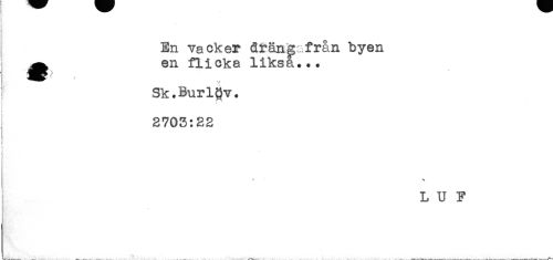 //// I En vacker drän^ från byen //// ^ en flicka liksa... //// ! Sk.Burlöv. //// t //// 2703:22 //// L U F ////