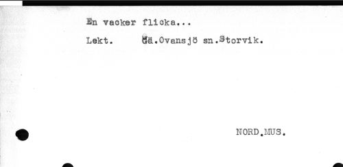 //// En vacker flicka... //// - //// Lekt. ^ä.Ovansjö sn.Storvik. //// P' . ** //// b<'''/.A'... //// C'.'.'; ////