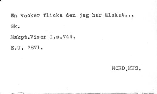//// En vacker flicka den jag har älskat... //// Sk. //// Mskpt.Visor I.s.744. //// E.U. 7871. //// NORD.MUS. ////