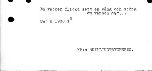 //// En vacker flicka satt en gång och sjöng //// om vännen f*4f*, * * //// ^ Se: E 1900 i^ //// i. //// y //// i //// 3 //// < //// KB:s SKILLINGTRYCKSREG. //// . ////