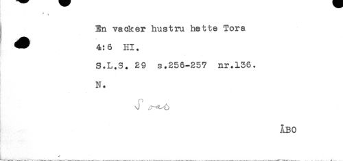 //// ' t //// ! //// < En vacker hustru hette Tora //// ' ^ 4:6 Hl. //// S.L.S. 29 s.256-257 nr.156. //// } //// N. //// ABO //// < . . ^ ////