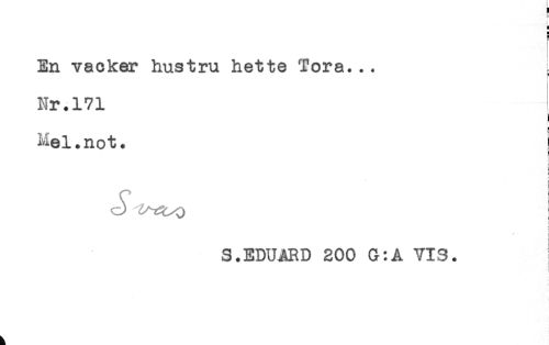 //// H //// H //// n //// En vacker hustru hette Tora... //// * //// Nr.171 //// ! //// ' //// Mel.not. //// r //// f //// t //// f //// t //// S.EDUARD 200 G:A VIS. ! //// t ////