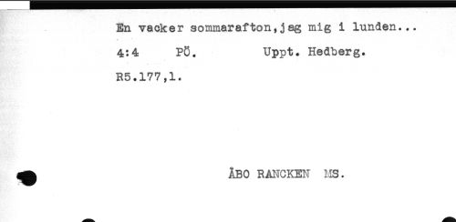 //// En vacker sommarafton,jag mig i lunden... //// 4:4 P§. Uppt* Hedberg. //// * //// -i' -'** -- //// R5.177,1. //// ^ ÅBO RANCKEN MS. ////