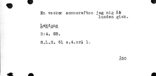 //// En veckor sommarafton jag mig åt //// lunden gick. //// Lekda,ns //// * //// 3:4. SB. //// S.L.S. 61 s.4.nrl 1. //// ÅBO ////