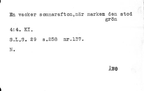 //// ! //// i //// En vacker sommarafton,när marken den stod //// grön //// < //// 4:4. Kl. //// S.L.S. 29 s.258 nr.137. //// N. //// ÅBO ////