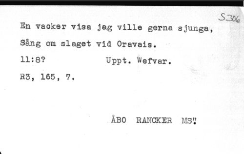 //// En vacker visa jag ville gerna sjunga, //// Sång om slaget vid Oravais. //// 11:8? Uppt. Wefvar. //// R5, 165, 7. //// ÅBO RANCKER MS? ////