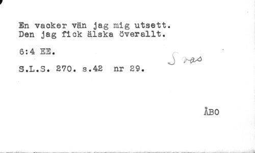 //// En vacker vän jag mig utsett. //// Den jag fick älska överallt. //// 6:4 EE. //// J //// S.L.S. 270. s.42 nr 29. //// ÅBO ////