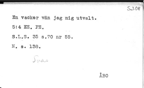 //// - -.----- ----- //// En vacker vän jag mig utvalt. //// 5:4 EE. PE. //// " t //// S.L.S. 35 s.70 nr 55. //// N. s. 138. //// ÅBO ////