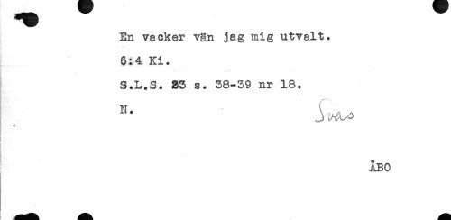 //// En vacker vgn jag mig utvalt. //// 6^4 Ki. //// T" "* //// S.L.S. 35 s. 58-59 nr 18. //// ! //// ÅBO ////