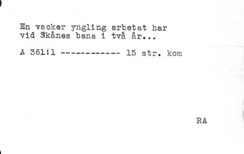 //// En vacker yngling arbetat har //// vid 3kånes bana i två år... //// A 361:1---15 str. kom //// RA ////
