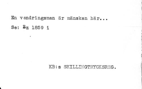 //// * //// ( //// i //// < //// En vandringsman är mänskan här... //// t //// r //// *) //// Se: Zz 1859 i //// ! //// * //// c //// : //// t //// KB:s SKILLIHGTRYCKSREG. ////