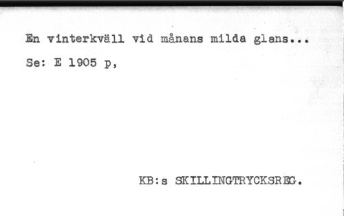 //// . - //// *' * ' //// t //// En vinterkväll vid månans milda glans... //// Se: E 1905 p, //// < //// t //// * //// < //// i //// KB:s SKILLINGTRYCKSR BG. //// < //// 1 ////
