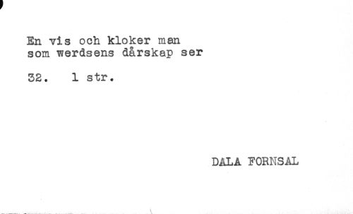 //// En vis och kloker man //// som werdsens dårskap ser //// 32. 1 str. //// * //// DALA FORNSAL ////