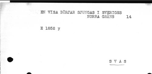 //// EN VISA BÖRJAR SJUNGAS I SVERIGES //// NORRA GRÄNS 14 //// E 1852 y //// i //// i //// J //// - //// i //// . //// w S V A S ////