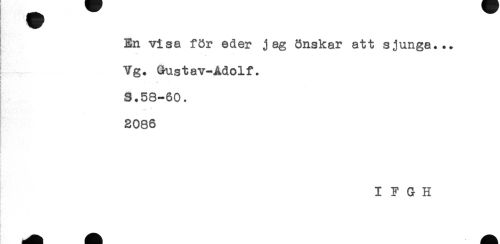 //// ! En visa för eder jag önskar att sjunga... //// Vg. Gustav-Adolf. //// K' //// S.58-60. //// 2086 //// j //// 7 //// I F G H ////