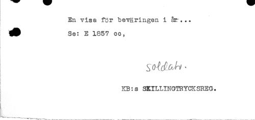 //// En visa för beväringen i år ... //// Se: E 1857 cc, //// ! //// KB:s SEILLINGTRYCKSREG. //// ! ////