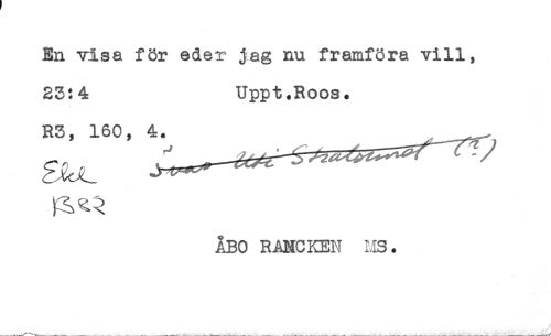 //// En visa för eder jag nu framföra vill, //// 23:4 Uppt.Roos. //// R3, 160, //// ÅBO RAMCKEN MS. ////