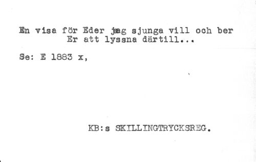 //// En visa för Eder jsag sjunga vill och ber //// Er att lyssna därtill... //// Se: E 1883 x, //// KB:s SKILLINGTRYCKSR3G. ////