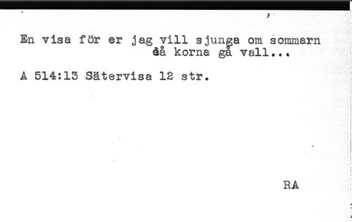 //// ' //// En visa för er jag yill sjunga om sommarn //// åå korna ga vall... //// A 514:13 Sätervisa 12 str. //// ! //// i //// < //// t //// ^ i //// < //// . //// ! //// : //// i //// ^ //// ! //// < //// RA //// : //// P //// -- ////