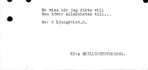 //// En visa här jag dikta vill //// Som hörer allmänheten till... //// ^ Se: 0 Ljungkvist,N. //// KB:s SKILLINGTRYGKSREG. //// _____y*^ \ '-. ////