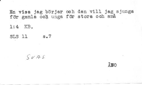 //// En visa jag börjar och den vill jag^sjunga //// för gamla ocR unga för stora och små //// * //// 1:4 KB. //// SLS 11 s.7 //// ÅBO ////