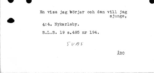 //// En visa jag börjar och den vill jag //// ^^ sjunga, //// 4:4. Nykarleby. //// S.L.S. 19 s.495 nr 194. //// ÅBO ////