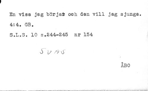 //// En visa jag börjat och den vill jag sjunga. //// 4:4. GB. //// <* //// S.L.S. 10 s.244-245 nr 154 //// ÅBO ////