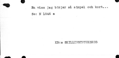 //// En visa jag börjar så simpel och kort... //// Se: N 1846 e //// j //// i //// KB:s SKILLINGTRYCKSREG ////