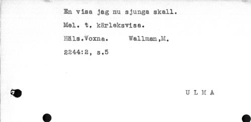 //// En visa jag nu sjunga skall. //// Mel, t. kärleksvisa. //// C"; . *r - ^ //// Häls.Voxna. Wallman //// 2244:2, s.5 //// ^ ULMA ////