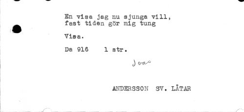 //// En visa jag nu sjunga vill, //// ^ fast tiden gör mig tung //// Visa* //// Da 916 1 str. //// i //// J t A " //// ANDERSSON SV. LÅTAR ////