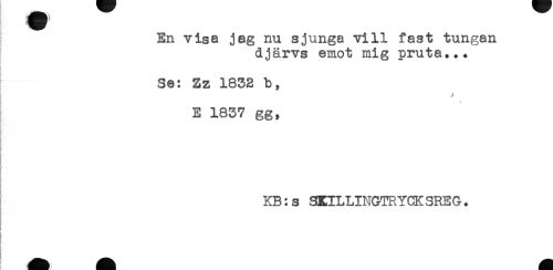 //// En visa jag nu sjunga vill fast tungan //// djärvs emot mig pruta... //// Se: Sz 1832 b, //// j //// i //// E 1837 gg, //// KB:s SEILLINGTRYCKSREG. //// ) //// i- //// ) ////