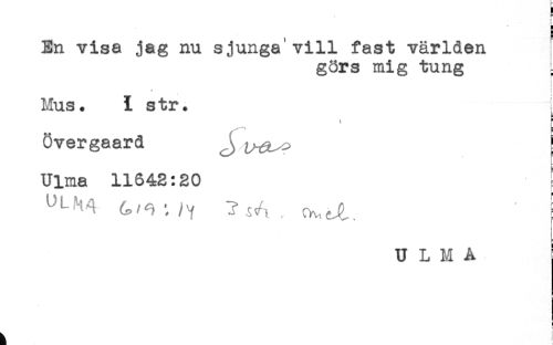 //// < //// t //// En visa jag nu sjunga'vill fast världen //// görs mig tung ^ //// c //// t //// t //// Mus. 1 str. //// i r //// Övergaard J //// Ulma 11642:20 //// i //// ! //// ) //// U L M Å //// ! //// t //// i //// F //// ä. t ////