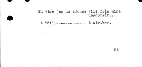 //// En visa jag nu sjunga vill från mina //// ^^ ungdomsår... //// A 75:\}---- 6 str.kom. //// i //// RA //// L^* - ...... ^ . ^ ..... ////