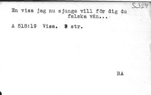 //// En visa jag nu sjunga vill för dig du //// falska vän...- //// t. * ? . //// A 518:19 Visa. 3 str. //// a //// i //// 'i //// RA ////