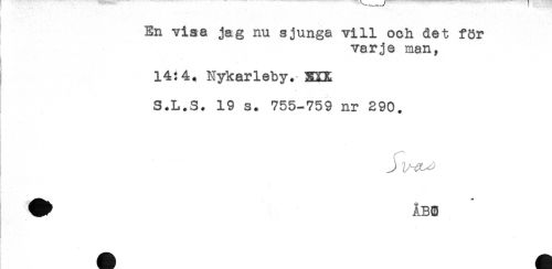 //// En visa jag nu sjunga vill och det för //// varje man, //// 14:4, Nykarleby.-SXX //// S.L.S. 19 s. 755-759 nr 290. ////