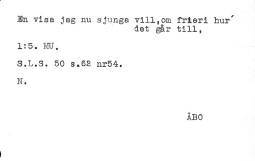 //// En visa jag nu sjunga vill,om frieri hur' //// det går till, //// 1:5. MU. //// S.L.S. 50 s.62 nr54. //// N. //// ÅBO //// ) ////