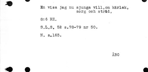 //// En visa jag nu sjunga vill,om kärlek, //// sorg och stråd, //// 8:6 RE. //// S.L.S. 52 s.78-79 nr 50. //// r //// N. s.165. //// t //// ' //// ÅBO ////