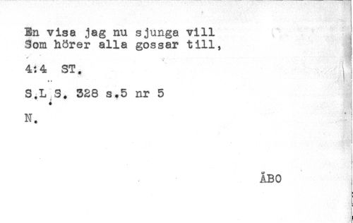 //// En visa jag nu sjunga vill //// Som hörer alla gossar till, i //// 4:4= ST. //// S.LIS. 328 s.5 nr 5 //// # //// N. //// ) //// < //// t //// ! //// f //// ÅBO ////