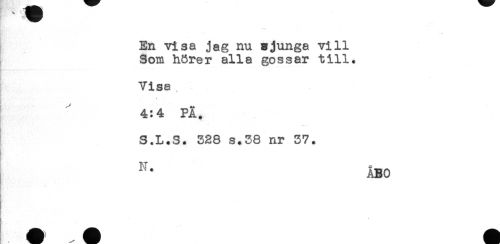 //// ^ ^ K //// MW**'-. '*. ** * //// -* //// En visa jag nu sjunga vill //// Som hörer alla gossar till. //// Visa //// * //// ^ ' _ ++ //// 4:4 PA. //// S.L.S. 328 s.38 nr 37. //// - //// ÅBO ////