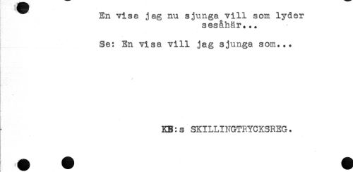 //// En visa jag nu sjunga vill som lyder //// sesåhär... //// . //// I Se: En visa vill jag sjunga som... //// - //// KB:s SKILLINGTRYCKSREG. ////