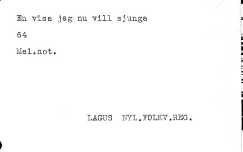 //// T //// En visa jag nu vill sjunga r //// 64 ^ //// Mel.not. ^ //// = //// ' //// H //// H //// LAGUS . FOLKV. REG. ////