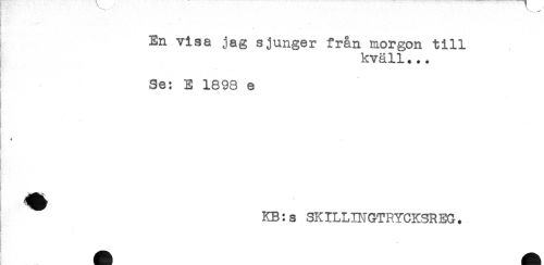 //// En visa jag sjunger från morgon till //// kväll... //// Se: E 1898 e //// f //// + //// - //// KB:s SKILLINGTRYCKSREG. ////