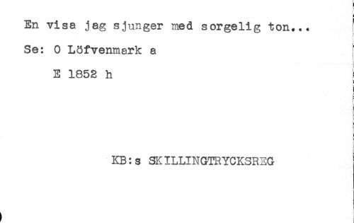 //// En visa jag sjunger med sorgelig ton... //// Se: 0 L3fvenmark a //// < //// E 1852 h //// : //// j //// KB:s SKILLINGTRYCKSREG //// t i ////