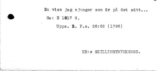 //// En visa jag sjunger som är på det sätt... //// i. //// ^ Se: E 1817 d, //// Upps. Z. P.s. 26:62 (1796) //// t //// KB:s SKILLINGTRYCKSREG. //// t____j___ ////