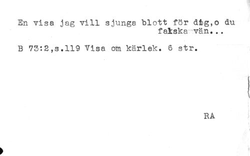 //// En visa jag vill sjunga blott för dig,o du //// fatska vän... //// * //// B 73:2,s.ll9 Visa om kärlek. 6 str. //// i //// t //// RA //// t //// ) ////