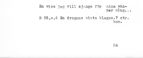 //// En visa jag vill sjunga för mina vän- //// ner mång. . . //// B 35,s.6 En dragons sista klagan.7 str. //// kom. //// RA ////