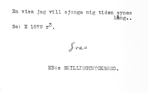 //// En visa jag vill sjunga mig tiden synes //// lång.. //// Se: E 1879 r", //// Jf //// KB: s SKILLINGTRYCKSREG. ////