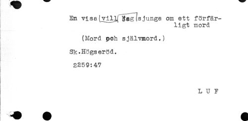 //// En visa(villj ^aglsjunge om ett förfär- //// ligt mord //// (Mord och självmord.) //// Sk.Högseröd. //// 3259:47 //// L U F ////