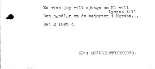 //// En visa jag vill sjunga om Ni vill //// lyssna till //// Den handlar om de badorter i Norden... //// Se: E 1893 c, //// KB:s SKILLINGTRYCKSREG. //// /.....* __ ...... ////