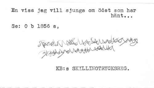 //// En visa jag vill sjunga om ödet som har //// hänt.+. //// Se: O b 1856 a, //// KB:s SKILLD^GTRYCKSREG. ////